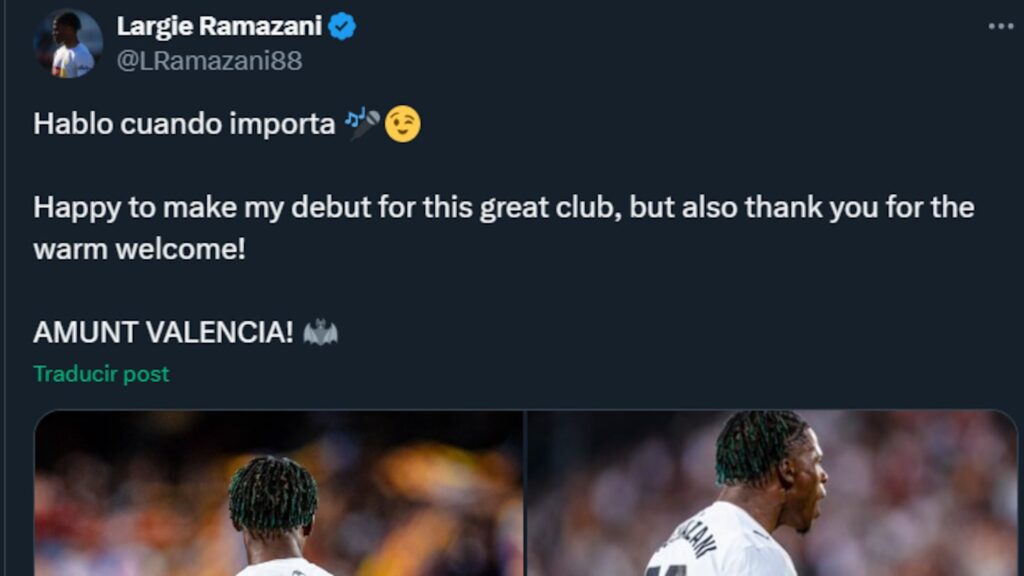 Largie Ramazani se ha sacado de la manga un comentario bastante irónico para defenderse de las críticas que le cayeron en redes tras su entrada al Valencia. El chaval dejó claro que él habla “cuando importa”, refiriéndose a la jugada que hizo justo en su debut contra el Getafe, donde asistió a Hugo Duro. Pero oye, lo bien que se movió en el campo no quita que su actitud fuera un pelín desagradable.