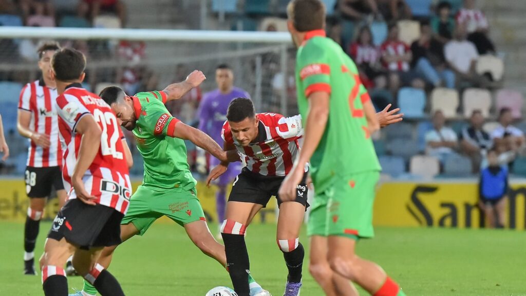 En el primer tiempo, hubo un intercambio de ocasiones, con los leones muy activos. Un cabezazo de Guruzeta tras un centro de Gorosabel y una jugada personal de Navarro con un tiro que se fue mordido. Oroz, siempre vinculado al Athletic, tuvo que entrar por el lesionado Moi Gómez a los 20 minutos. Y tras un paradón de Padilla, que ha sido castigado con tres partidos en Liga, llegó una falta ejecutada por Rubén García. Pero también respondía a un remate de Iker Muñoz. A media hora de juego, Guru asistía a Nico Serrano, el más activo del primer acto, pero no logró superar a Aitor Fernández.